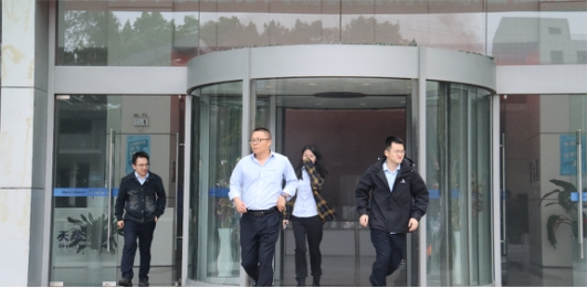 本次演练由公司总经理应刚担任总指挥。下午2点40分,模拟火情发生,三楼品管部设备超负荷运转引燃包材,发生火灾事故。消防中控室接到报警信号,火灾警报拉响,消防应急指挥部迅速启动应急预案,警械疏散组、通讯联络组、善后处理组、物资供应组、抢险救灾组五个组全体人员等立即各就各位。楼内全体员工弯腰扶墙、捂住口鼻,按照应急疏散路线,有序撤离到楼下“紧急疏散集合点”,随即进行了点名确认。本次演练参与的人员数量、疏散用时均达到了预期,演练在紧张的气氛中有序顺利完成。