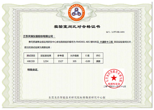 附录1:实验室间比对合格证书(六溴环十二烷)