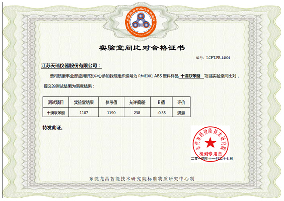 附录3:实验室间比对合格证书(十溴联苯醚)