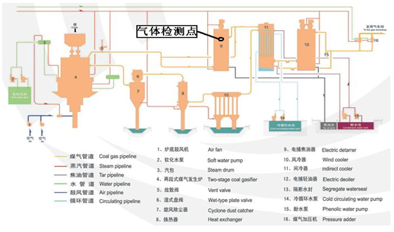 图4 乐鱼体育激光在线气体分析仪GALAS 6V在焦炉系统中监测点的布设