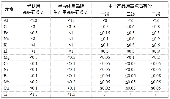 石英砂中杂质元素限值(单位:μg/g)