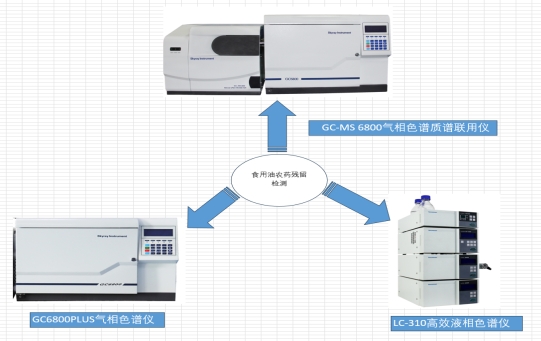 食用油中的农药残留检测,因其油品基质复杂,样品采用有机溶剂萃取,经SPE固相萃取净化后,分别用GC-MS 6800气相色谱质谱联用仪、GC-6800plus气相色谱仪和LC-310高效液相色谱仪检测,该方法可用于食用油中有机磷类、有机氯类、拟除虫菊酯类及氨基甲酸酯类等农残的测试。