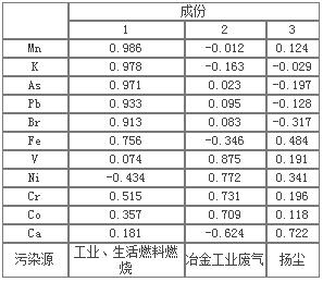 为了进一步研究PM2.5与大气重金属之间的关联,并为PM2.5的控制提供方向,我们通过已经划分的三个组分与大气PM2.5浓度进行相关性分析。结果如图5,发现该地区主要影响PM2.5的污染源为组分2(冶金工业废气)。