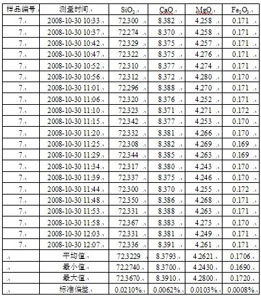标样:建材院玻璃所自制标样(仅有常规测量的四种元素)