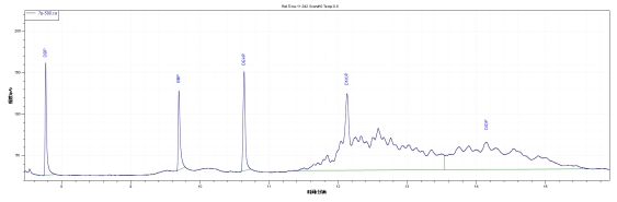 选取某品牌快递包装袋进行邻苯二甲酸酯的快筛测试,谱图和检测结果如下:
