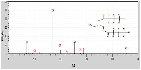 本实验采用气相色谱质谱联用法(GC-MS),在SIM扫描模式下对奶粉中的氯丙醇进行定性定量测试,方法稳定可靠,线性范围好,灵敏度高,受杂质峰干扰小,完全符合测试要求。
