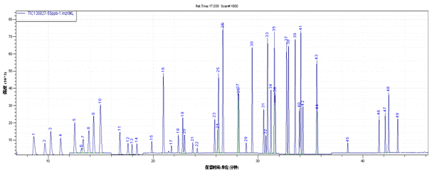 图4. 54种挥发性有机物的选择离子监测模式图(SIM)