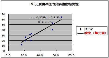有关元素的测试值与真实值的相关性如下表示: