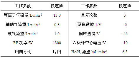 表2.碰撞反应模式下仪器工作参数