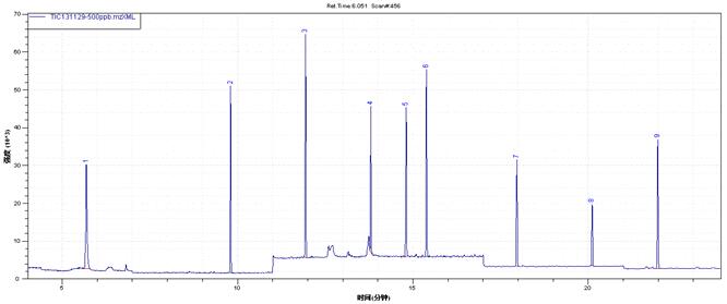 测定方式:TIC(FULL SCAN)定性(扫描范围:40-300 amu),SIM模式定量。